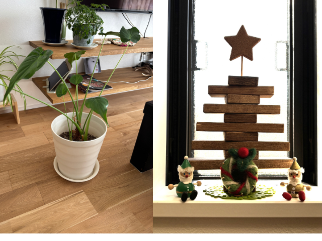 そして右の写真は、一昨年のクリスマスの際にプレゼントさせていただきました、大工の手作りの木のツリーです。今年も飾っていいただき、とても嬉しいです!