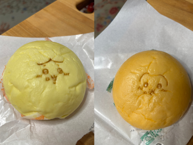 どちらがどの味がわかりますでしょうか?左がピザまん、右がカレーマンです。