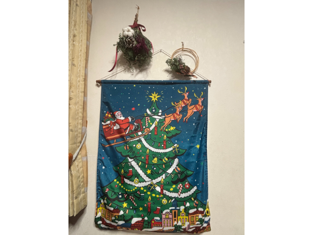 早速自宅に帰って、新しく購入したクリスマスのタペストリーと共に飾らせていただきました。