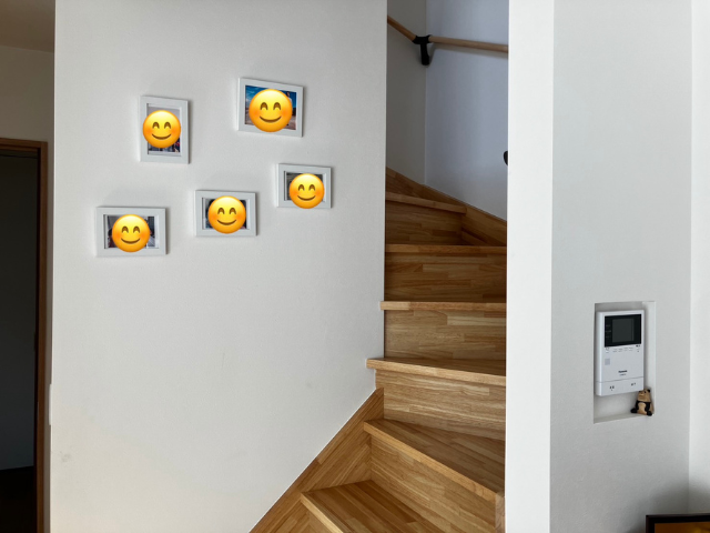 ③「また最近階段に写真を飾り始めたのですが、リビングイン階段にしたことで、リビングにいながらも見れるし、階段登る時にも見れるので、子供たちは喜んでます🌟」